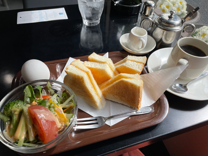 胃カメラは絶対に鎮静剤をお願いする派で、それでも直前は怖くて仕方ありません。終わった後は朦朧として30分ほど休ませてもらいますが、この日もちょっと目覚めが悪いというか。あまり歩けないと思い、ふらふらとこちらもお店が目に留まりそのままモーニングになだれ込みました。730円。
