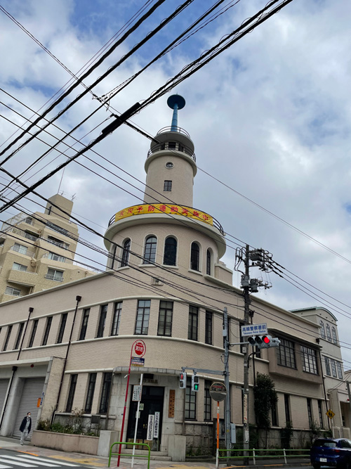 桜田通りの脇道から二本榎通りへ進み、高輪消防署二本榎出張所。
