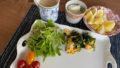 『あさイチ』のトーストの特集で紹介されていて美味しそうだったのでやってみました。このトーストに気持ちが行っていて、全体像を撮るのを忘れましたが、毎日似たようなものだからいいか。