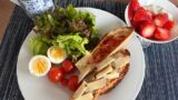 パンは、自家製のふすま入りパンをトーストにしてバターを。