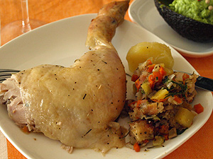 そうこうする内にチキンもこんがりと焼けてきたので、そろそろご飯にしますか。