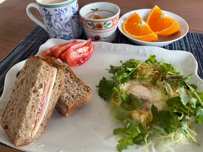 シンプルなふすま入りパンは、ふすまをたくさん買ったこともありしばしば焼いています。今朝はハムとチーズをサンドしました。パンが香ばしくどんなフィリングもばっちりです。