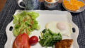 巣篭り卵はキャベツとパクチーで。カレー塩も掛けています。