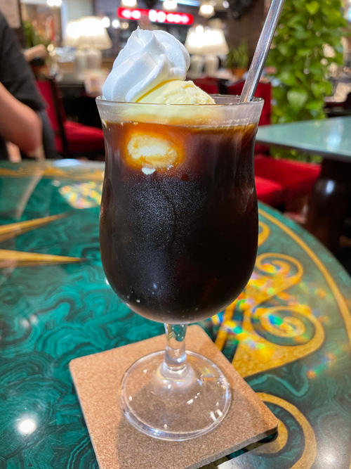 ウォーキングの帰り、いい加減暑かったので喫茶店で一休みすることにしました。コーヒーも飲みたかったし、おやつ的な要素も欲しくて、コーヒーフロート780円にしました。生き返る一杯でした。