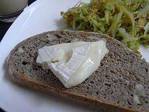 軽くトーストして、カマンベールチーズをソースのように付けながら食べました。