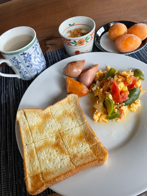 トーストをする際に、切れ目を入れるとよいとそこかしこで聞くので、今朝はやってみました。