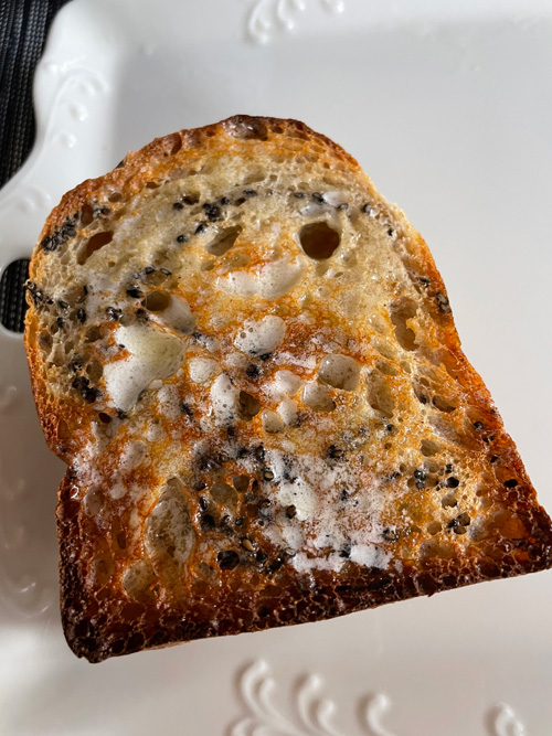 今朝のパンは、自家製の黒ゴマ入りふすまパンをバタートーストに。