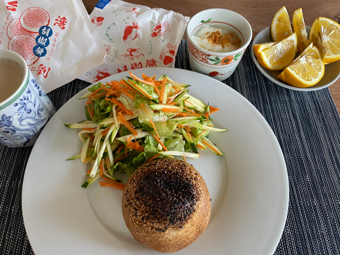 夫が吉祥寺で胡椒餅を買ってきてくれました。トースターでリベイクしたら上がちょっと焦げてしまった…。