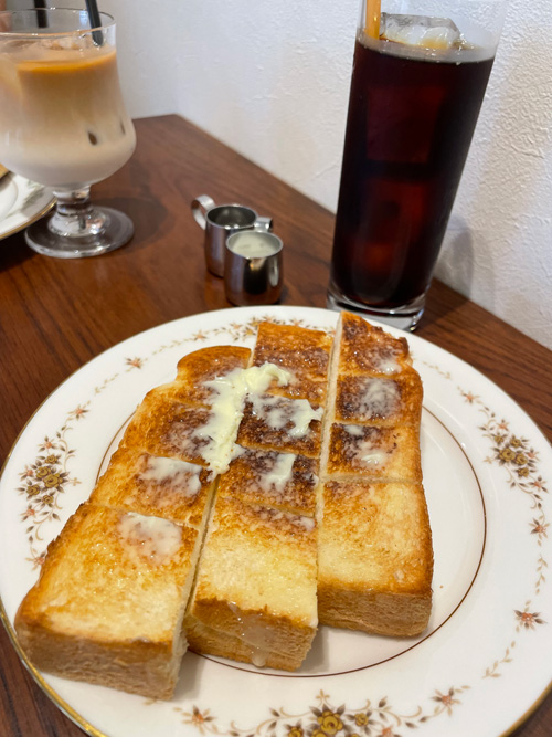 今回はシンプルにバタートースト600円にしてみました。さくさくして美味しかったです。誰かに作ってもらう贅沢も味わっています。暑い季節なのでアイスコーヒーをお供にしました。