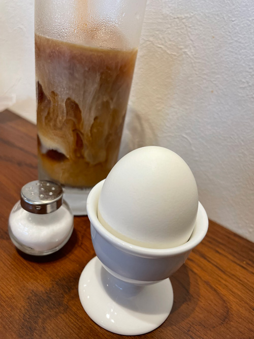 喫茶店のゆで卵ってなんかいい感じだなあ。アイスコーヒーにはミルクを入れて混ざり始めたところ。じっくりと混ざるのを眺めながら、良い時間を過ごしました。