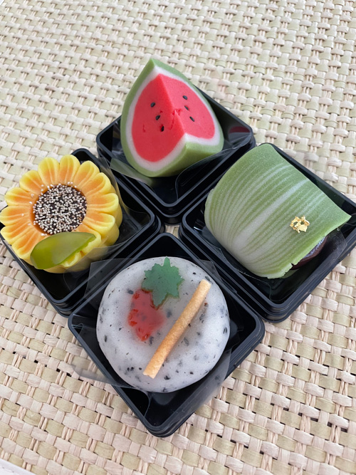 つくばいは水を張ったように寒天か何かがくぼみに満たされていて、本当に芸が細かい…どれもこれも素晴らしいです。スイカは皮の方はこんな風にちゃんと縞々模様もついています。