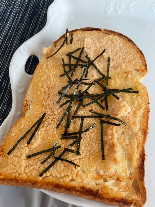 一昨日明太トーストを作ったのですが、リッチなパンでは少し自分の好みとは違うなあと感じていました。昨夜のウォーキングで超熟を見て、そうだこれだよと思い買ってきました。考えたらホットサンドにも超熟を使ってましたよ、そういえば。