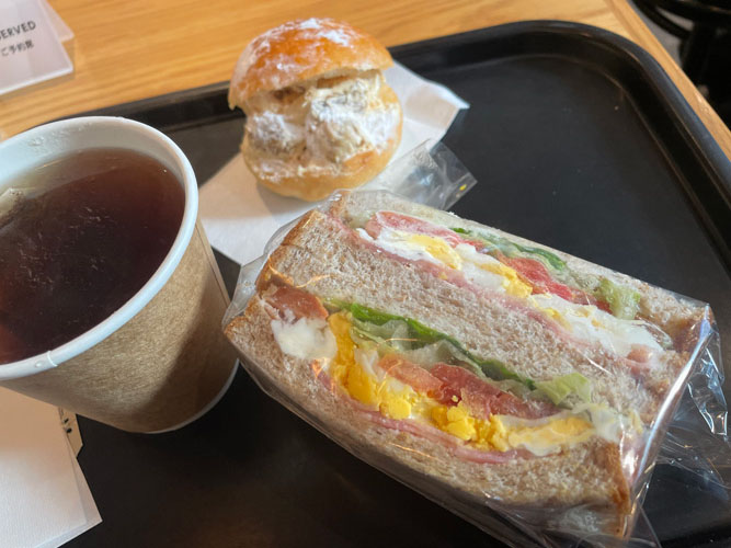 今回TOHOシネマズシャンテで観たので、半券サービスで日比谷シャンテのル・プチメックでお昼ご飯にしました。BLETサンド580円といちじくとキャラメルクリーム387円。特典はコーヒーか紅茶1杯サービスで、ホットのアールグレイにしました。ありがたい。