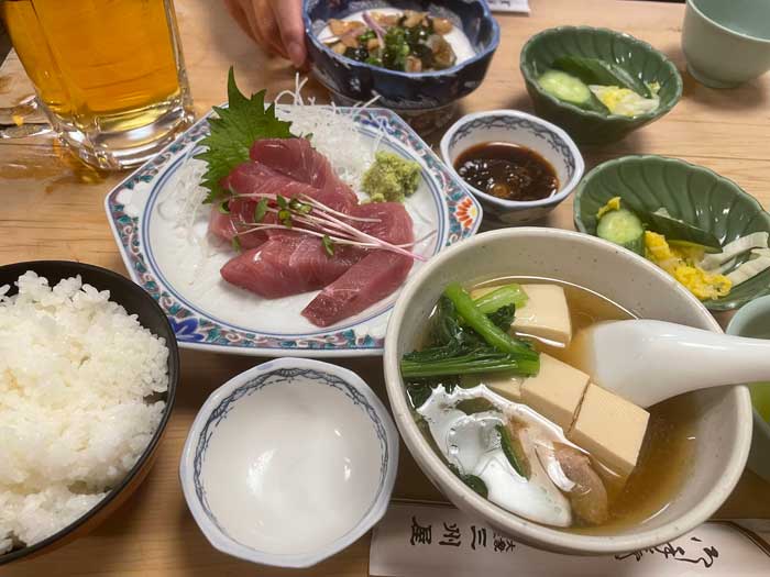 やはり名物の鳥豆腐が付いてくる方の定食がいいなと思い、ぶり刺身定食1,500円にしました。こういうのいいなあ。