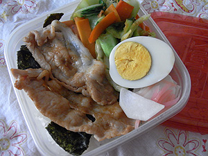 ゆで卵という、大体いつも同じようなおかずが並びます。