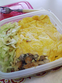 卵を薄く焼いてカバーして、オムライス風に。