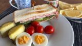 ポッチーズベーカリーで購入したクグロフで朝ごはん。断面を撮るために一旦2切れともお皿に置きましたが、実際には半分ずつにしています。口解けのよい美味しいクグロフでした。