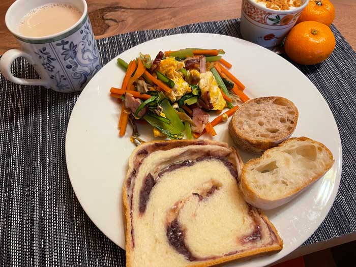 パンはすべて夫の神戸土産。あん食も久々でした。まずは焼かずに食べて、全体的にくちどけがいいことを再確認しました。右側のフランスパン的なものは、色がついているのはバゲットカンパーニュロゼ。ほんのり色がついています。右下は、はるゆたかのバタール。どれもやっぱり美味しい。