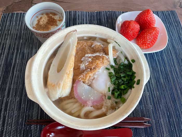辻麺業の肉うどんときつねうどん、大関のセットが夫の祖母から届くのが冬のお楽しみ。先月からしばしばあつあつ朝うどんを堪能しており、いよいよ今シーズン最後のきつねうどんです。トッピングを追加しており、卵と、西門蒲鉾の手にぎり特竹輪も。