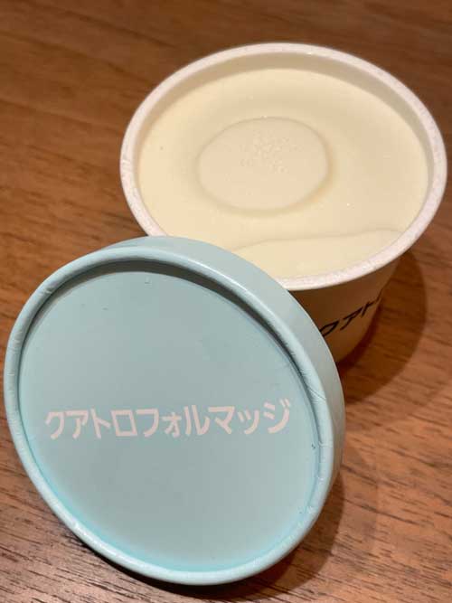 オーケーのオリジナルのアイスクリーム、クアトロフォルマッジ。