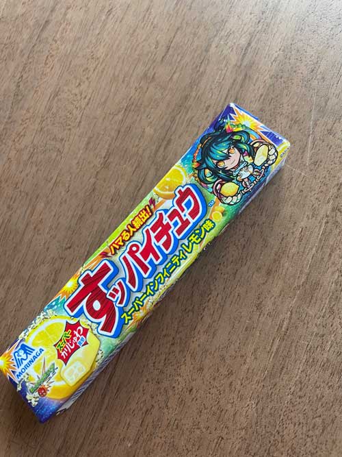 スーパーインフィニティレモン味とのこと、このくらいの酸っぱさはデフォルトでもっと酸っぱいのが欲しいなあと思います。久々にハイチュウ食べたけど、ハイチュウ好きだな。