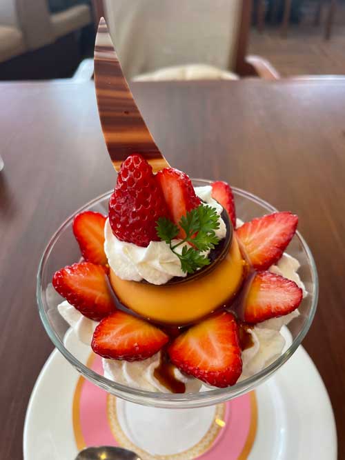 食べ終わってみて、お腹の余裕もありまだ行ける感じだったので、苺のプリン・ア・ラ・モードパフェ1628円も追加しました。
