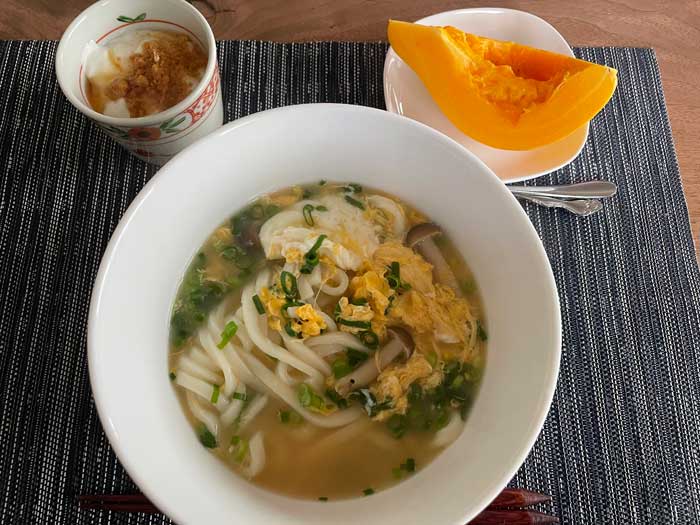 うどんの食べ方で私の認識にはなく、夫のリクエストで作った卵とじうどん。
