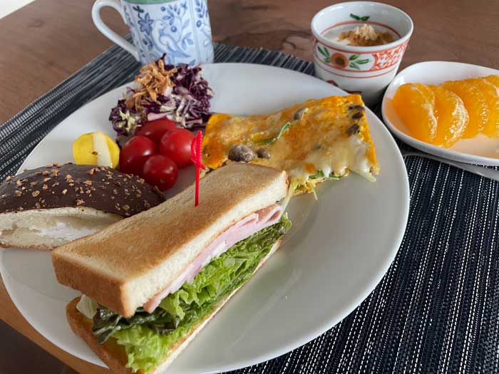 ホットサンドにするために時々超熟の8枚切りを備えております。今朝はレタスを使いたかったので、トーストサンドにしました。ここ数日のハムは、ちょっと美味しいものなのでやたらサンドウィッチにしたくなります。
