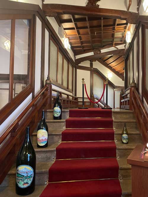 予約はデフォルトで17時半で最初の回でした。入り口から風格に溢れています。階段の向こうはなんだろう。