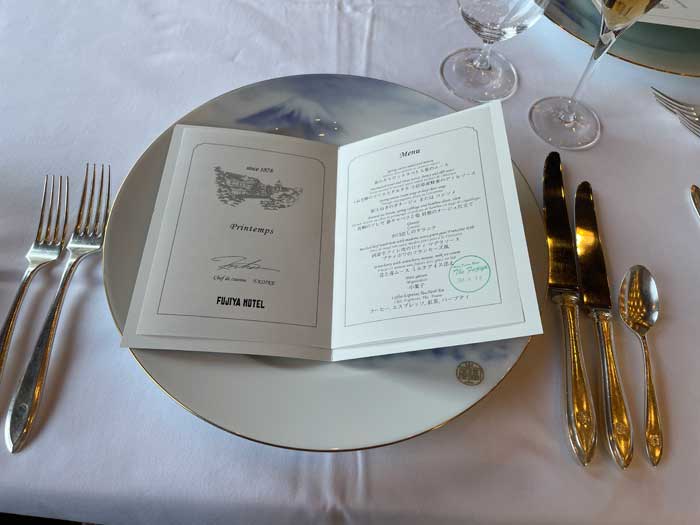 ゆったりとした時間を過ごしつつ、椅子やカトラリーにも富士屋ホテルのマークがあるのを眺めたり。