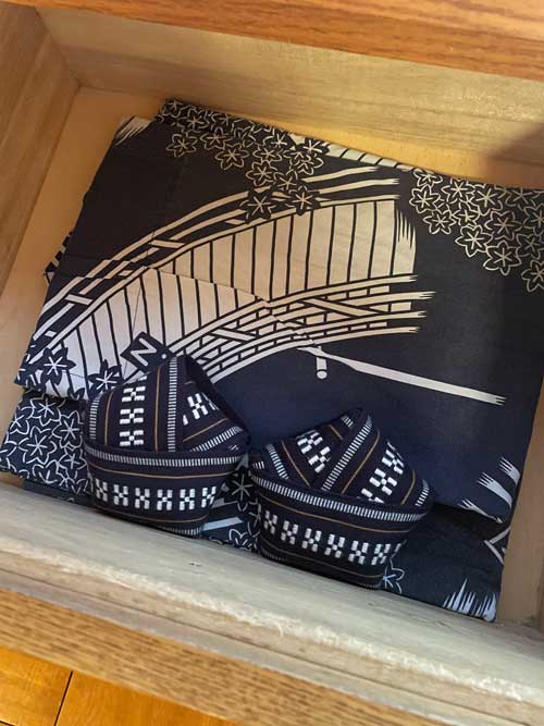 テレビの下の棚には浴衣が入っています。