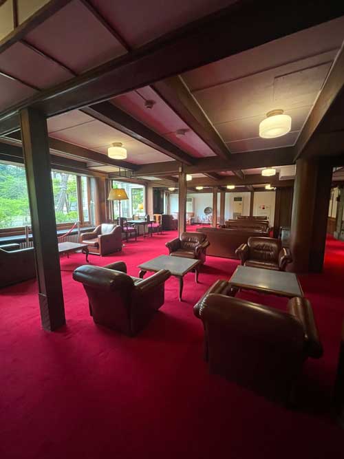 なるべく人が映りこまないように、後から撮り直しに一人散策をした写真も織り交ぜています。一日2回ホテル内ツアーが開催されており、参加しました。事前申し込み不要で、16時または17時にこのロビーに集合です。ホテルのスタッフの方から色々な説明を聞きながら、館内を移動していきます。民宿から始まり、金谷カッティジインになり、日本初のリゾートホテルとして成長を遂げていく歴史は実に興味深いです。