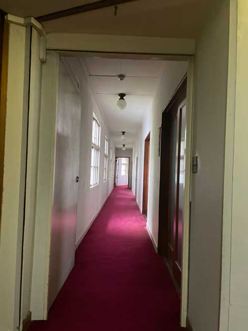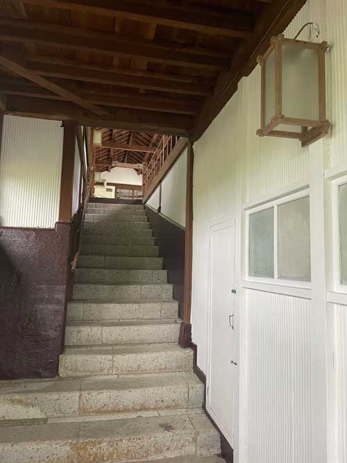 フロント裏の階段を上ります。1階は増築と知ると、この継ぎ目の何となくちょっと違和感があって納得できました。