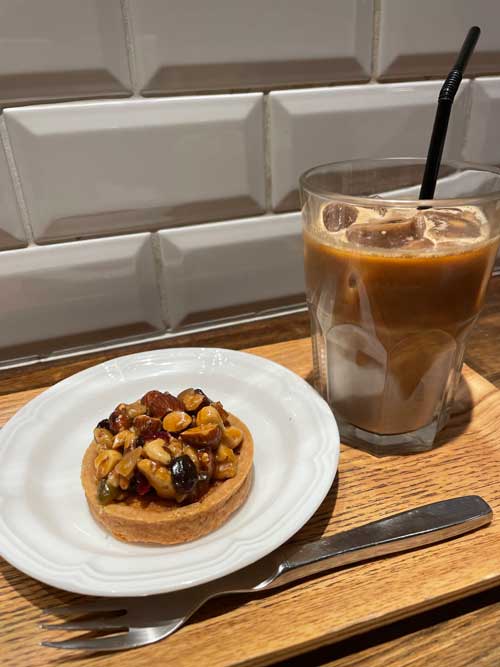 アイスカフェラテ610円とナッツタルト530円。カフェラテも豆を選ぶことができて、ブラジルにしました。当たり前ですが、ちゃんと淹れたコーヒーが美味しいです。
