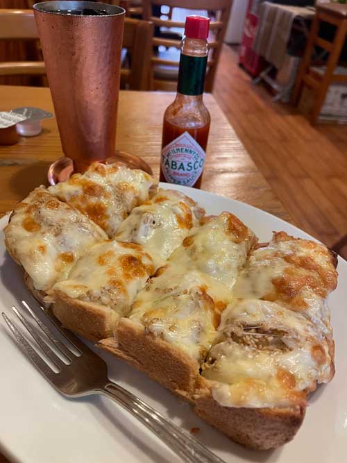 そしていよいよごまチーズオニオントーストが運ばれてきました。チーズの焦げ目も理想的です。イギリスパンの厚みもしっかりあり、食べ応えがあります。こういう組み合わせもありなのか…と美味しくいただきました。