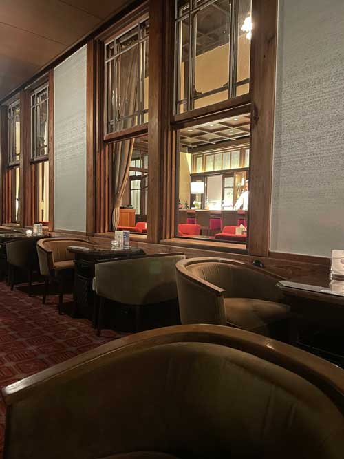 正確には通されたのは昼はティーラウンジとして使われる外に面したエリアで、バーカウンターなどがあるのはその内側となります。