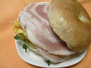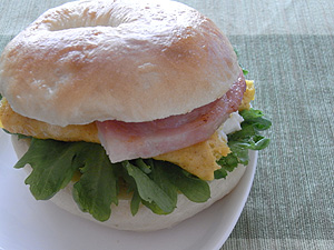 ベリーハムというのを思いがけず購入したので、2通りの調理法でベーグルにサンドしてみました。