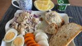 スクランブルエッグは、ハムとかクリームコーンとかを入れたらとてもボリュームが出ました。いつもと違う感じでこれも面白い。