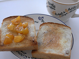 こちらは金柑の蜜煮トースト。