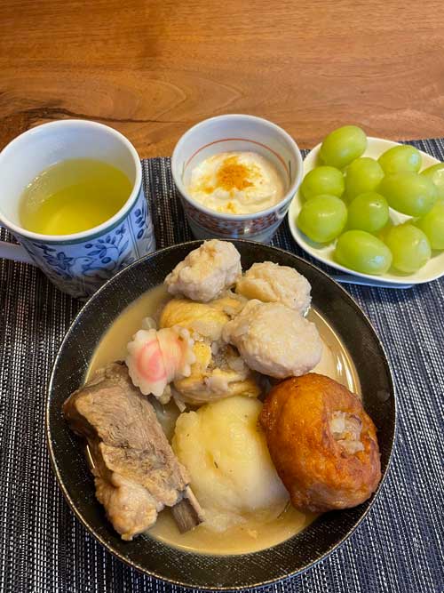 昨日の朝のおでんの2日目。じゃがいももほろほろになっていました。