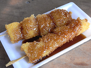 佐野名物にしようとしているという噂のいもふらい1本80円。