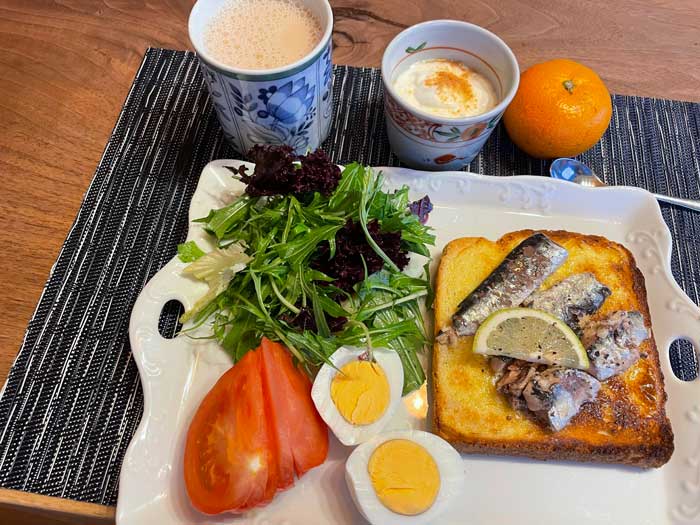 缶詰は時々在庫を確認しないと、長期保存できると思って油断して賞味期限が迫っていたりします。今朝のオイルサーディンはうっかり2か月過ぎていたので、今朝のトーストにしました。