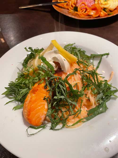 そして冒頭のパスタです。最初から好みの味を引き当ててしまったらしい。どうしよう、たくさん他にもメニューがあるのにまたこれにしてしまいそうなくらい。サーモンも大きな一切れが香ばしく焼かれてどん!と鎮座していました。