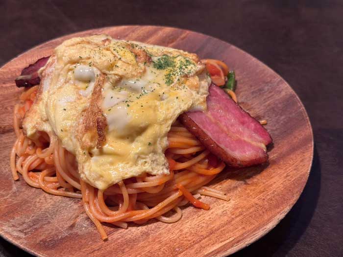 パスタはもちっとしていてチーズはとろり。夫のオーダーでナポリタンが終わってしまっていたので、大人気のようです。もともと前夜から仕込むので数量限定のようです。