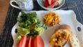 ホットサンドにするとより実感するのですが、色々慌ただしくたくさんの工程を経たはずなのに、出来上がりがコンパクトになるので「あれ…?」と思ってしまうのです。もっとたくさんのものがお皿に乗っていてもいいような気がするのに。
