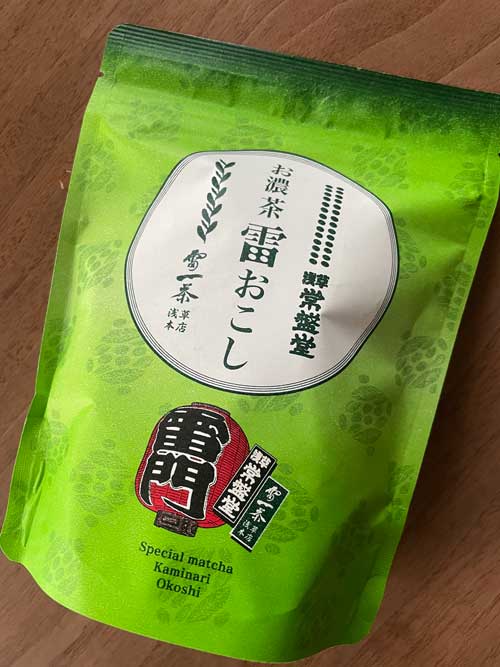 お馴染みの浅草常盤堂の雷おこし、お濃茶で抹茶の風味が濃くて美味しかったです。べらぼう大河ドラマ館のお土産屋さんで買いましたが、ほかでも売られているのかな。