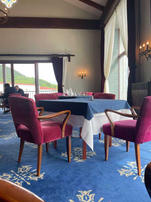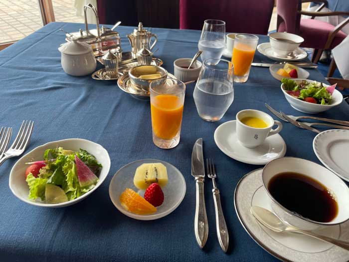 朝食前に散策していたのは、チェックイン時に朝食の時間の枠が8時からしか空いていなかったため。散策していたらゴルファーの方がすでにあのように行動開始していたので、納得でした。そして私の我儘を通してもらい、洋食での予約です。なぜなら洋食はメインダイニング、和食はグリルだからです。ディナーで来なかったこの場所に入りたかったのでした。
