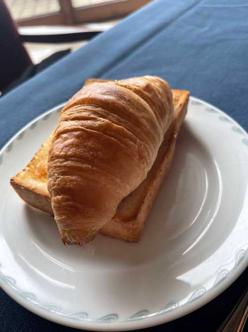 パンは、トースト/ライ麦/クロワッサンから2つ選べます。ライ麦以外にしたのですが、このような形で配膳され手興味深かったです。冷めないようにする工夫なのでしょうか。