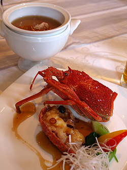 手前が伊勢海老のブラックビーンズソース炒め。
