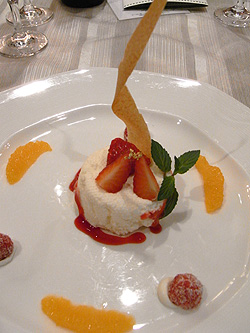 デザートには、フロマージュブランの淡雪仕立て オレンジとベリー